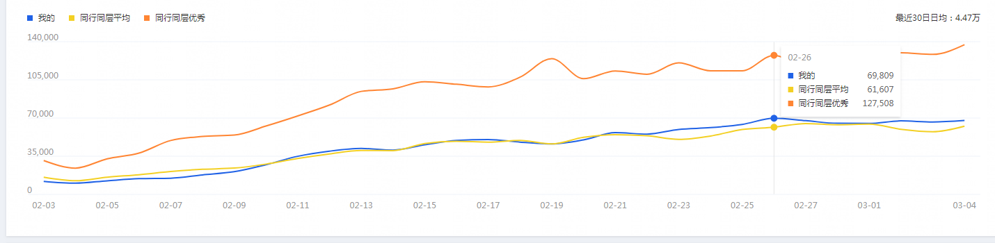 从图1的最近30天数据可以看出,在过年期间店铺访客比较少,但是假期结束之后流量处于稳定的上升趋势,然后配合店铺春上新的活动节奏,钻展也会带动店铺流量的增长。