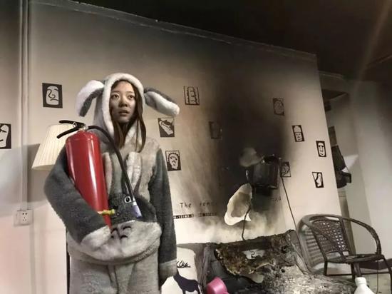 楼道的墙壁已被烧焦 肆虐的火舌随时可能将人吞没 但是王雪毅然选择了折返回去