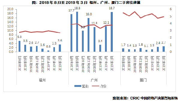 如图所示,首批解禁城市3月二手房挂牌量涨幅明显。以厦门为例,二手房挂牌量环比上涨12%,较去年8月上涨61%,市场二手房供应量呈持续走高的态势。对于投资性客群来说,在投资资金冰封2年之久后,获利套现的驱动较为强劲,亟需挂牌入市。但三城均出现了量增价跌的现象,广州、厦门的均价较去年皆有所下跌,福州的成交均价为近几月来最低点位,部分客群似有急于获利了结之心态,出现了阶段性抛售现象。我们预测,随着城市限售的陆续解禁,未来二手房的放盘量依旧会继续扩张。