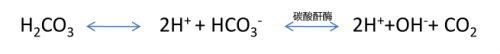 值得一提的是,碳酸在人体中会进行电解的可逆反应,产生H2CO3/HCO3-的溶液来维持血液中的PH值。透过此系统能缓冲代谢所产生的酸、碱或者大量饮水所造成体液的稀释状态,使血液pH值得以维持在上述正常的范围,故而碳酸饮料中的气泡水成分其实对人体健康存在正面的促进作用的,不是没有可取之处的。在碳酸酐酶下电离方程式: