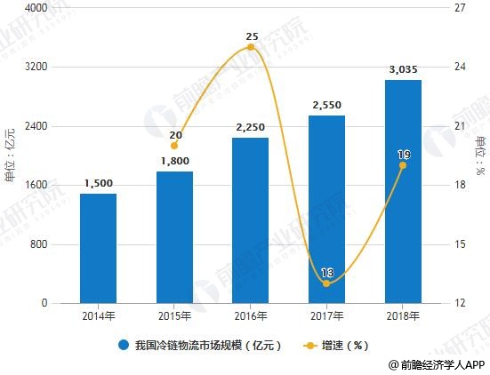 2014-2018年我国冷链物流市场规模统计及增长情况