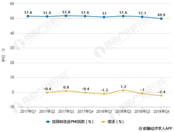 2017-2018年各季度我国制造业PMI指数统计及增长情况