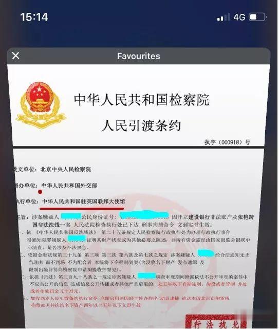 ▲不法分子给小胡提供的所谓引渡条约,但是有两个地方写的是“中华人民共和国驻英国联邦”,正确的写法是“中华人民共和国驻大不列颠及北爱尔兰联合王国”(图片由小胡提供)