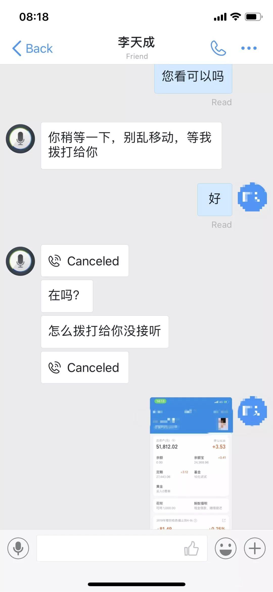 之后小胡又拨通了三个朋友的电话,一共通过支付宝借了差不2.5万元,加上小胡自己的钱,一共凑了差不多4万元。回到宿舍后 ,假警官的电话又打了回来,询问他的情况。小胡说他还可以再向姐姐借钱。这个假警官说现在时间来不及了,只能先和检察官申请资产冻结。