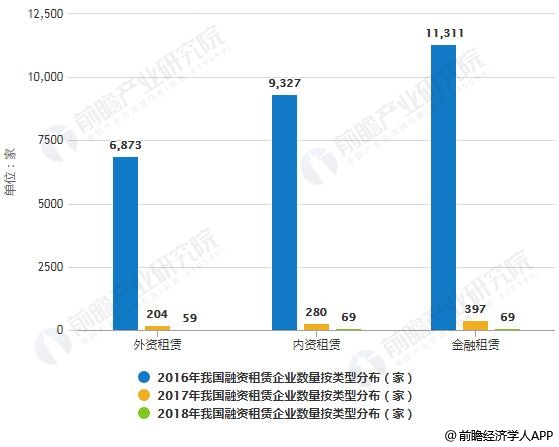 另外,内资租赁方面,2018年天津、陕西、沈阳、广东等地自贸区继续审批内资企业开展融资租赁业务试点。截至2018年12月底,全国内资融资租赁企业总数为397家,较上年底的280家增加了117家,增长41.8%。