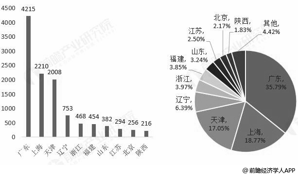 由于融资租赁行业最早起步于国际贸易。全国融资租赁企业地区分布极不均匀。
