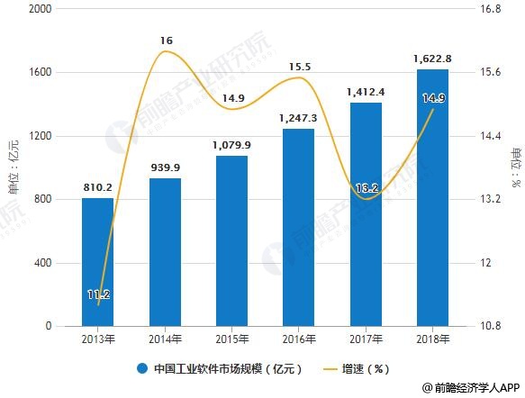 2013-2018年中国工业软件市场规模统计及增长情况预测