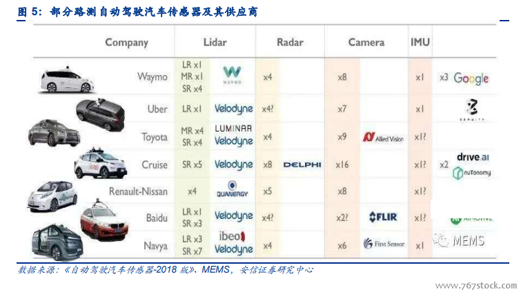 谷歌 Waymo 与通用 Cruise 分别代表了 ICT 与 OEM 企业的自动驾驶最高水平。加州车管局发布的最新《2017 自动驾驶“脱离报告”》(2018 年报告尚未出)共收录了 20 家企业,剔除未开展路测的宝马、福特、本田、蔚来汽车美国、大众美国和 wheego、未在加州开展路测的特斯拉以及未向美国加州车管所递交报告的法拉第未来,余下 12 家路测车企中谷歌旗下 Waymo 不论累计路试里程数雄踞磅首,人工介入频次平均 5596 英里一次,自动驾驶技术成熟度当属 12 家之最,通用 Cruise 亦有不俗表现,13.1 万英里的路测历程,最多的路测车辆数,行驶里程平均每 1254 英里才人工介入一次,从这份报告来看 Waymo 与通用Cruise 分别达标了 ICT 与 OEM 企业的最高水平。