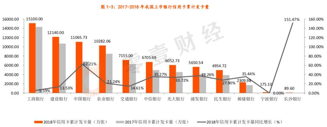 (1)上述列明12家银行的信用卡累计发卡量统计数据,其中宁波银行未公布2017年数据,因此无法显示同比增长率;