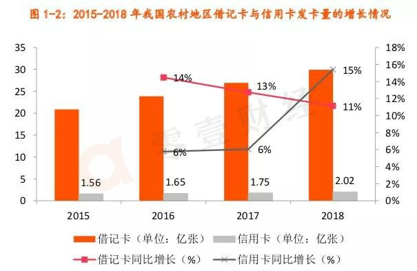 2019年4月初,中国人民银行网站发布一篇题为《2018年农村地区支付业务发展总体情况》的文章,其中指出:截至2018年末,农村地区银行卡发行量32.08亿张。人均持卡量为3.31张。其中,借记卡29.91亿张,增长11.13%;信用卡2.02亿张,增长15.60%;借贷合一卡1434.35万张。按照农村信用卡2.02亿张的规模来测算,占我国全部信用卡的比例为29.45%,约为近三成。