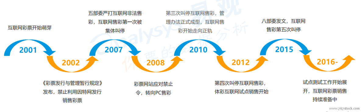 互联网销售彩票发展五次叫停,禁令解除仍存在较大不确定性。我国互联网彩票萌芽于2001 年,在之后的15 年里曲折成长。2007 年互联网彩票曾达到第一个顶峰,随后行业在政策监管和巨大利益驱动下下曲折发展。互联网彩票行业共经历了5 次行业关停整顿。从历次行业整顿到恢复的经历来看,行业整顿的持续时间平均没有超过1年。虽然互联网彩票销售在我国发展迅速,但其发展直接受政策调控影响。2015 年2 月开始的最近一次互联网彩票行业整顿,至今已经持续了4 年。