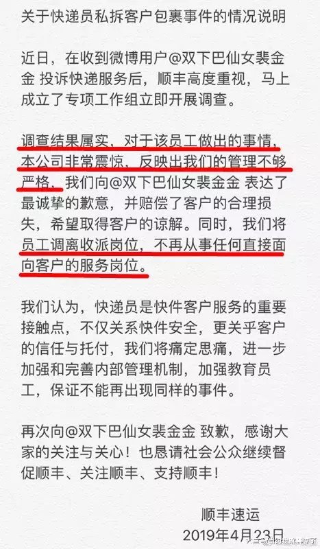 事情在曝光后,顺丰官方也给了回应: