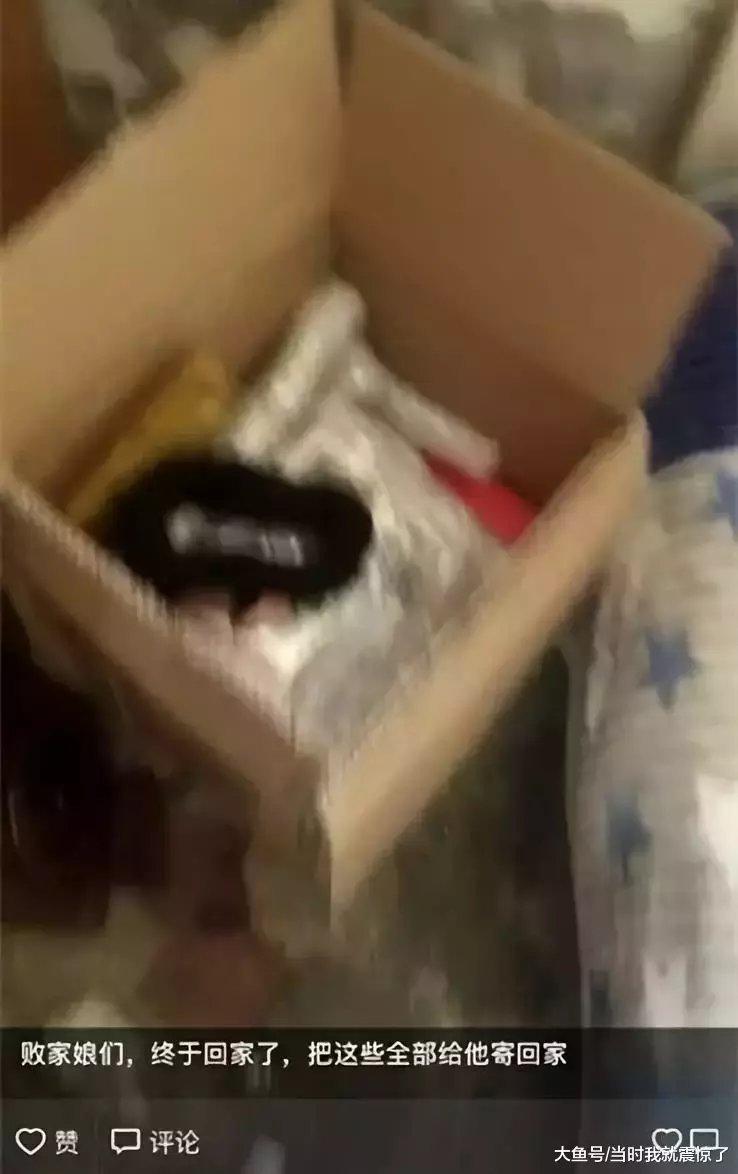 配文是“败家娘们,终于回家了,把这些全给他寄回家”。