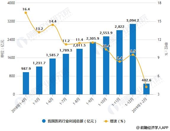 2018-2019年前2月我国医药行业利润总额统计及增长情况