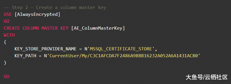 其次,在AlwaysEncrypted数据库中,我们创建列主密钥(Column Master Key,简写为CMK)。