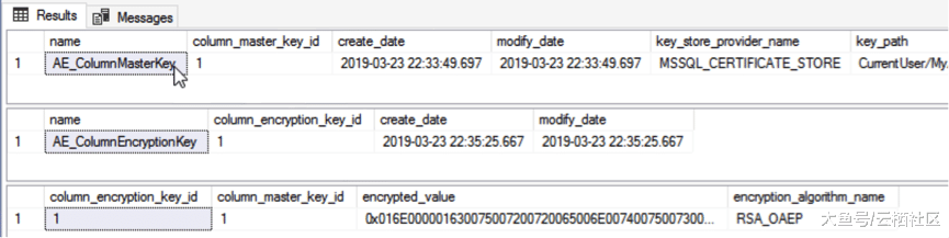 接下来,我们检查下刚才创建的列主密钥和列加密密钥,方法如下: