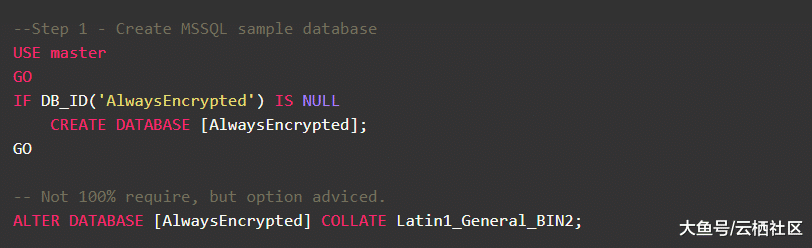 为了测试方便,我们首先创建了测试数据库AlwaysEncrypted。