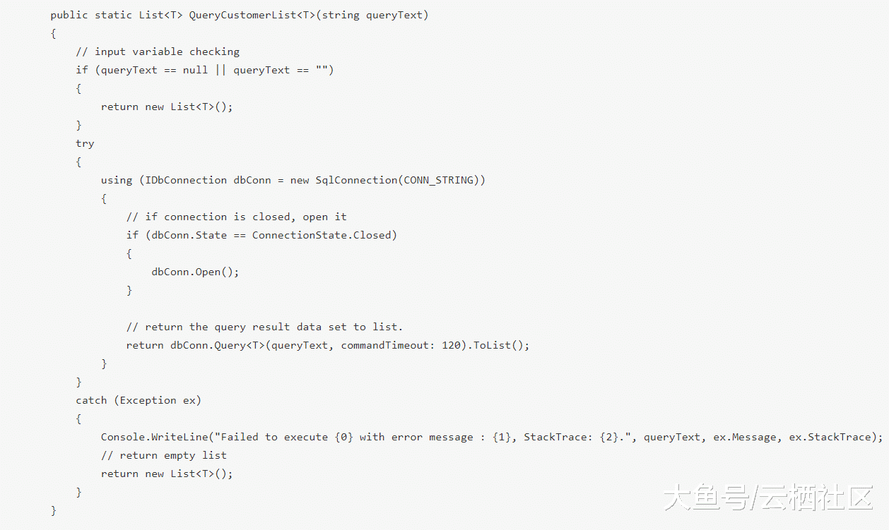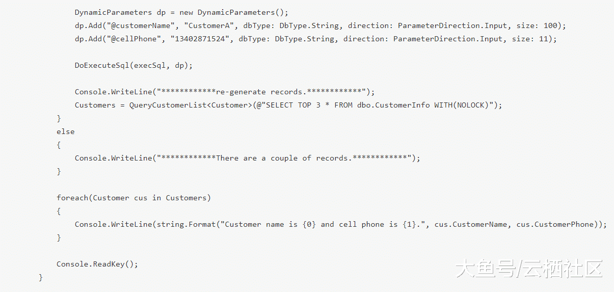 为了简单方便,我们直接在SQL Server服务端测试应用程序,因此您看到的连接字符串是连接本地SQL Server服务。如果您需要测试远程SQL Server,修改连接字符串即可。整个测试应用程序代码如下: