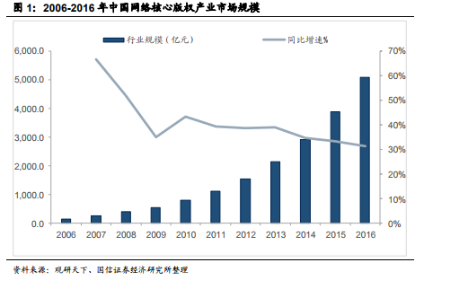 中国网络版权产业规模突破 6000 亿元,并持续快速增长。国家版权局网络版权产业研究基地今天在京发布《中国网络版权产业发展报告(2018)》。报告显示,当前我国网络版权产业继续保持快速增长趋势。根据测算,2017年中国网络版权产业的市场规模为 6365 亿元,较 2016 年增长 27.2%。其中,中国网络版权产业用户付费规模为 3184 亿元,占比规模突破 50%。2017 年我国网络版权产业的体量已经成长为 2013 年的 3 倍。