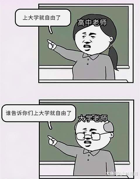 高中老师说“上了大学就自由了”,大学老师说:“谁告诉你们上大学就自由了”。嘿嘿是不是感觉非常的熟悉。这句话大家又听老师说过几回,被骗过几回呢?