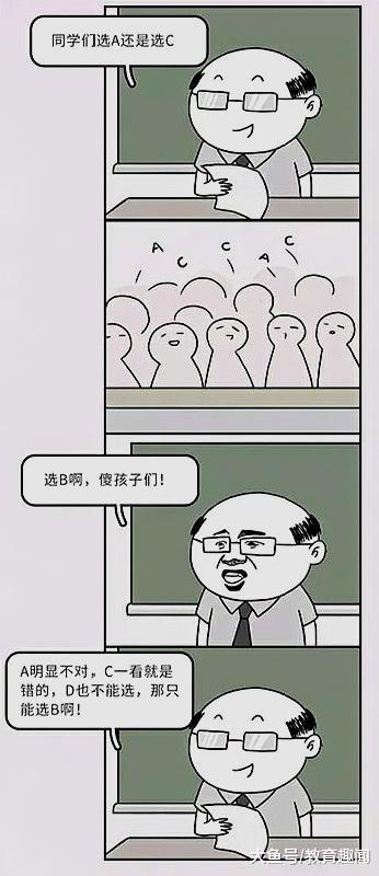 “这个题选a还是c”,同学们在下面一片的呼喊声有的喊a有的喊c,结果这是老师下的又一个套。从那时候起直到现在别人问我一个问题二选一,我还会考虑第三种情况。没办法当年培养出来的习惯了,怕又掉坑里去……
