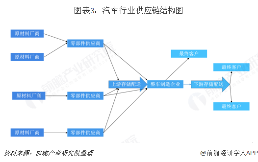 汽车行业的供应链是以汽车制造企业为核心,汽车制造企业作为供应链的物流调度与管理中心,担负着信息集成与交换的作用,在产品设计、制造、装配等方面具有强大优势。其不但可以拉动上游供应商的原材料供应,也可以推动下游分销商的产品分销及客户服务。