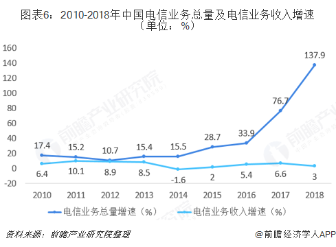 2018年,我国通信业深入贯彻落实党中央、国务院决策部署,大力推进网络强国建设,着力提升基础设施能力,助力信息消费活力释放。2018年电信业务总量达到65556亿元(按照2015年不变单价计算),比上年增长137.9%;电信业务收入累计完成13010亿元,比上年增长3.0%。
