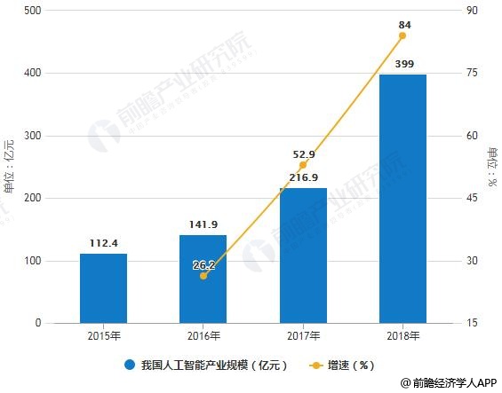 2015-2018年我国人工智能产业规模统计及增长情况预测