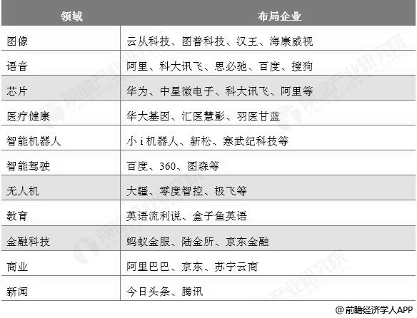 近年来,在国内人工智能市场上BATJ(百度、阿里、京东、腾讯)等一干科技巨头以及相当一部分新兴的“独角兽”企业,在国家政策的大力支持下纷纷布局AI市场,主要方式有对AI领域的直接投入研发,也有通过对外投资、收购相关产业,完善产业链布局。