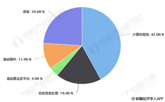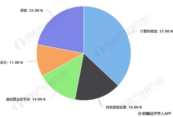 2017年我国人工智能产业按技术领域分布占比统计情况