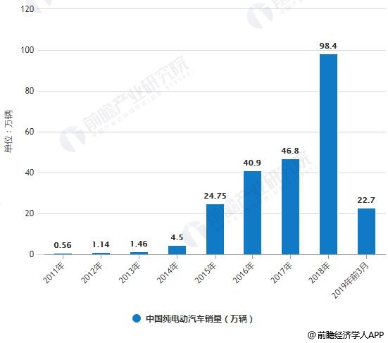 相比于2018年,2018年,纯电动汽车产销分别完成98.6万辆和98.4万辆,比上年同期分别增长47.9%和50.8%