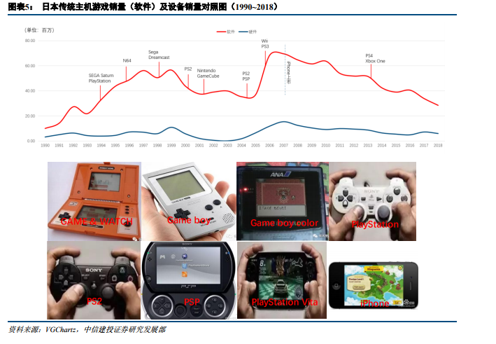 纵观游戏产业的变迁,硬件设备与软件技术的每一次创新升级都引发了游戏产业的整体变革,促进了游戏内容品质和用户体验的不断提升。自上世纪中叶数字游戏出现,街机、手柄等游戏设备实现了游戏的便捷推广,PLATO 系统作为分时共享系统的出现实现了多人同时在线,由此诞生了第一款大型计算机网络游戏《太空大战》;20 世纪 80 年代,多人交互操作站点实现文字网游,如《风云》,任天堂推出第一代游戏机(红白机),带动《超级玛丽》等经典小游戏;90 年代,3D 技术、三维像素以及动态捕捉技术促进 3D 游戏的诞生,第一款 3D 格斗游戏《VR 战士》实现角色动态真人呈现;20 世纪末,互联网技术成熟,游戏直接接入互联网,“大型网络游戏”(MMOG)诞生,如《网络创世纪》;21 世纪,苹果推出触摸屏智能机,多点触控创新技术、视频识别技术拓宽游戏玩法,触摸游戏、体感游戏上线,如《水果忍者》,同一时间,索尼和任天堂分别推出 PSP、NDS 游戏掌机,主机游戏风靡一时;2016 年,AI 技术引入人机对战,增加游戏挑战性和趣味性。同时,虚拟现实技术和增强现实技术也促进 AR、VR 游戏产业崛起,成为未来游戏产业发展新的风向标。