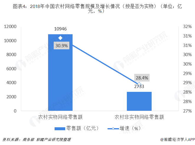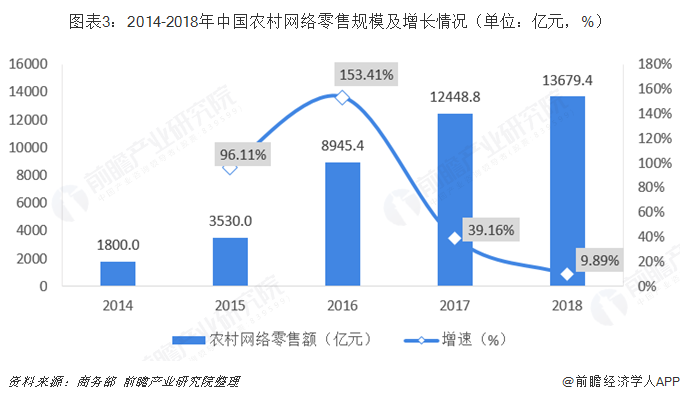 据商务部发布的《2018年中国网络零售发展报告》显示,2018年,农村地区网络零售规模仍在不断扩大,全国农村网络零售额达13679.4亿元,占全国网上零售额比重提升至15.18%。
