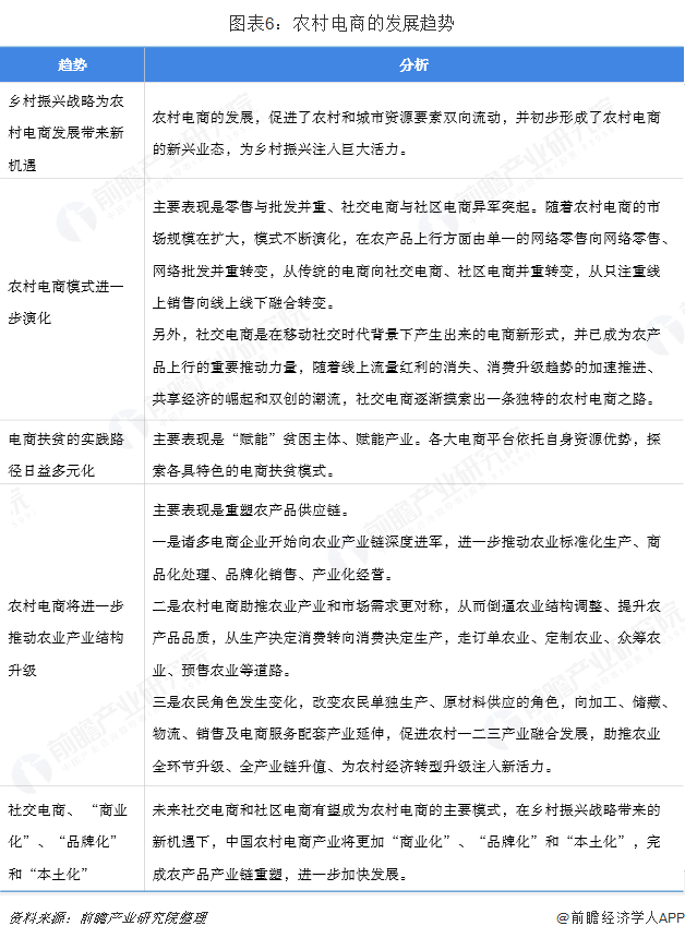 随着乡村振兴战略为农村电商发展带来新机遇,未来农村电商模式将进一步演化,同时电商扶贫的实践路径日益多元化,农村电商将进一步推动农业产业结构升级。此外,未来社交电商和社区电商有望成为农村电商的主要模式,在乡村振兴战略带来的新机遇下,中国农村电商产业将更加“商业化”、“品牌化”和“本土化”,完成农产品产业链重塑,进一步加快发展。
