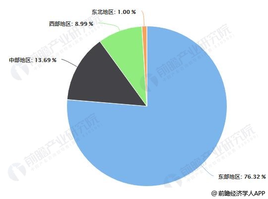 2019年Q1全国规模以上文化及相关产业分区域占比统计情况