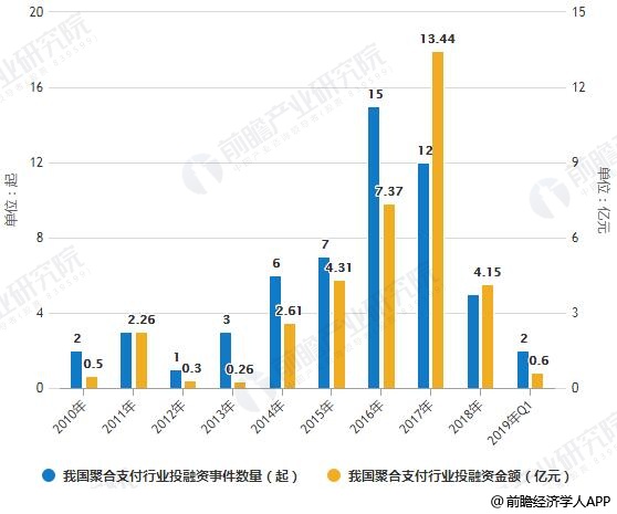 2010-2019年Q1我国聚合支付行业投融资事件数量及金额统计情况