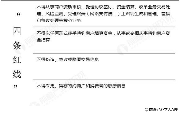 为规范聚合支付市场发展,2017年中国人民银行先后发布《中国人民银行支付结算司关于开展违规"聚合支付"服务清理整治工作的通知》(银支付〔2017〕14号)、《中国人民银行关于持续提升收单服务水平规范和促进收单服务市场发展的指导意见》(银发〔2017〕45号)。在明确聚合支付不得从事核心业务,不得经手特约商户结算资金,不得伪造、篡改或隐匿交易信息,不得采留敏感信息四道红线后,央行对于聚合支付采取了支持态度,聚合支付合规发展之后将迎来发展机遇期。