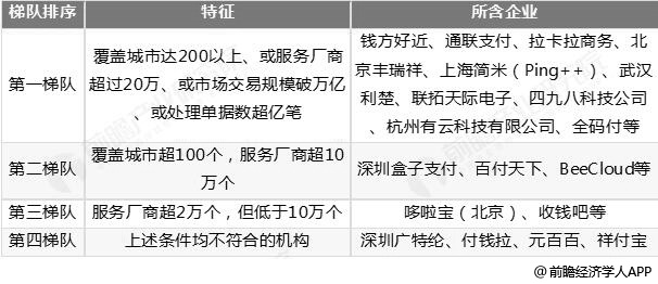 2018年我国聚合支付行业市场竞争梯队分析情况