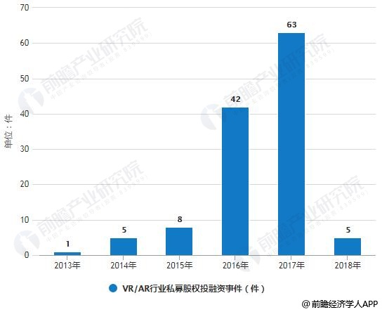 2013-2018年VR/AR行业私募股权投融资事件统计情况