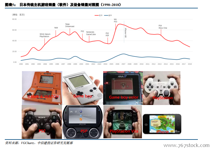 纵观游戏产业的变迁,硬件设备与软件技术的每一次创新升级都引发了游戏产业的整体变革,促进了游戏内容品质和用户体验的不断提升。自上世纪中叶数字游戏出现,街机、手柄等游戏设备实现了游戏的便捷推广,PLATO 系统作为分时共享系统的出现实现了多人同时在线,由此诞生了第一款大型计算机网络游戏《太空大战》;20 世纪 80 年代,多人交互操作站点实现文字网游,如《风云》,任天堂推出第一代游戏机(红白机),带动《超级玛丽》等经典小游戏;90 年代,3D 技术、三维像素以及动态捕捉技术促进 3D 游戏的诞生,第一款 3D 格斗游戏《VR 战士》实现角色动态真人呈现;20 世纪末,互联网技术成熟,游戏直接接入互联网,“大型网络游戏”(MMOG)诞生,如《网络创世纪》;21 世纪,苹果推出触摸屏智能机,多点触控创新技术、视频识别技术拓宽游戏玩法,触摸游戏、体感游戏上线,如《水果忍者》,同一时间,索尼和任天堂分别推出 PSP、NDS 游戏掌机,主机游戏风靡一时;2016 年,AI 技术引入人机对战,增加游戏挑战性和趣味性。同时,虚拟现实技术和增强现实技术也促进 AR、VR 游戏产业崛起,成为未来游戏产业发展新的风向标。