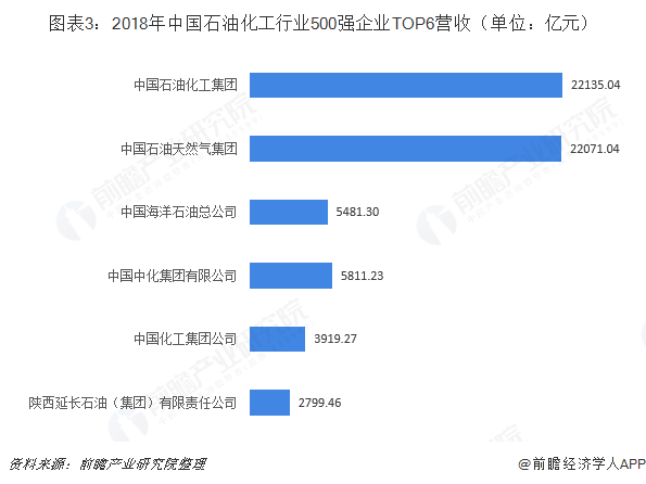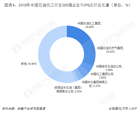 加上中国海洋石油总公司、中国中化集团有限公司、中国化工集团公司及陕西延长石油(集团)有限责任公司四家特大型企业,500强企业TOP6销售收入合计占到500强年销售收入总额的53.54%,合计占行业45.15%。