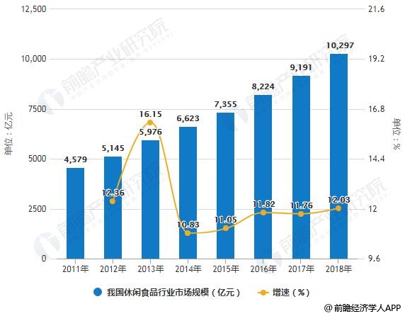 2011-2018年我国休闲食品行业市场规模统计及增长情况