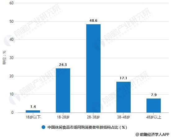 2018年中国休闲食品市场网购消费者年龄结构占比统计情况