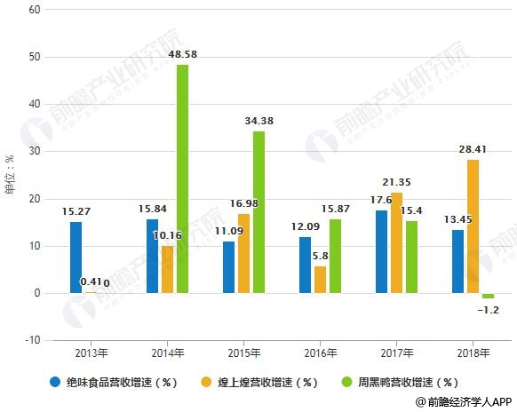2013-2018年我国休闲卤制品行业龙头企业营收增速统计情况