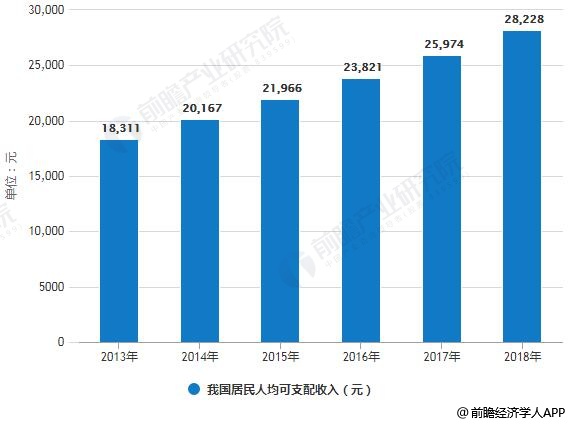 2013-2018年我国居民人均可支配收入统计情况