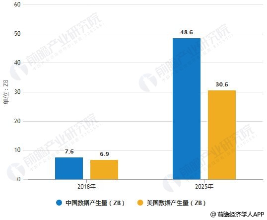 当前,我国正在加速从数据大国向着数据强国迈进。国际数据公司和数据存储公司希捷的一份报告显示,到2025年,随着中国物联网等新技术的持续推进,其产生的数据将超过美国。我国产生的数据量将从2018年的约7.6ZB增至2025年的48.6ZB,数据交易迎来战略机遇期。1zettabyte大约是1万亿gigabyte,这是当今常用的测量方法。与此同时,美国2018年的数据约为6.9ZB。到2025年,这个数字预计将达到30.6ZB。