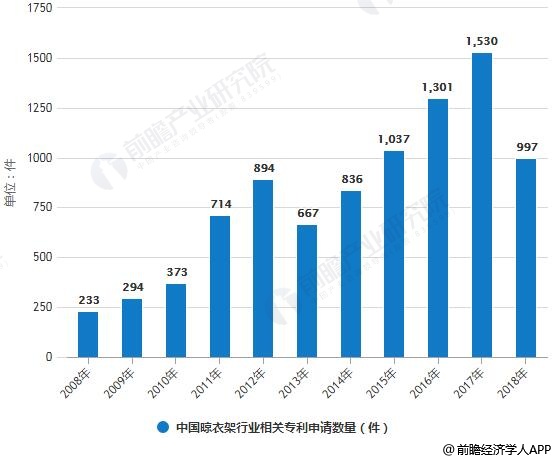 2008-2018年中国晾衣架行业相关专利申请数量统计情况