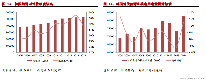 计划三倍提升能源自给率,日本通过氢能实现能源战略转型。2018 年日本经济产业省公布了第五期《能源基本计划》,提出了面向 2030 年及 2050 年的能源中长期发展战略,未来发展方向是压缩核电发展,降低化石能源依赖度,举政府之力加快发展可再生能源,推进日本能源转型。日本的能源资源严重依赖于海外供给,存在着相当程度的国家能源风险。由于 2011 年的事故导致核电发展停滞等情况恶化,日本能源自给率从 2010 年度的 20%降至 2015 年度的 7%左右。目前来看日本电能难以作为能源供应的主力,氢能作为日本作为一种清洁的二次能源,构建完成氢能制备、储存、运输和利用的国际产业链,对于日本有很高的战略价值。因此,日本积极推进氢燃料发电、氢燃料汽车发展,推进“氢能社会”的构建。