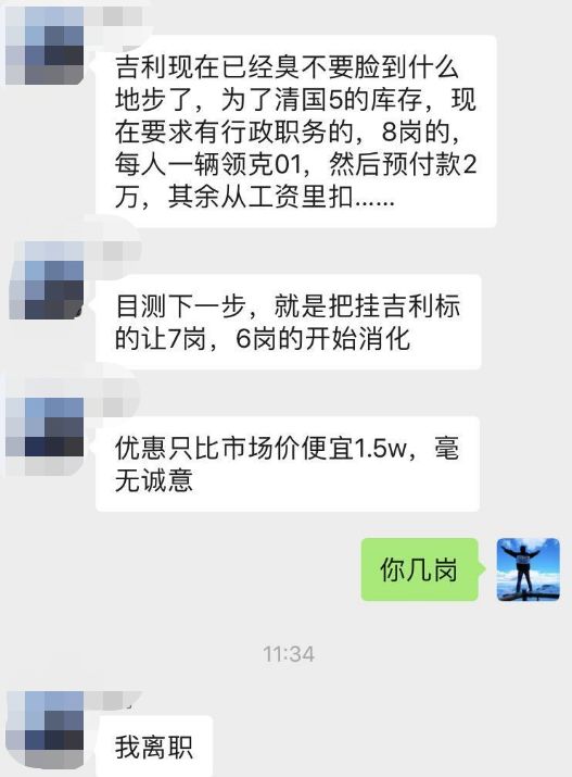 然而相比其他车厂只是推出优惠政策,员工最后拥有是否购买的选择权,吉利的部分员工似乎就没那么自由了,8岗以上的员工必须买一辆领克01,就算优惠1万多,领克01的价格仍然需要十多万。