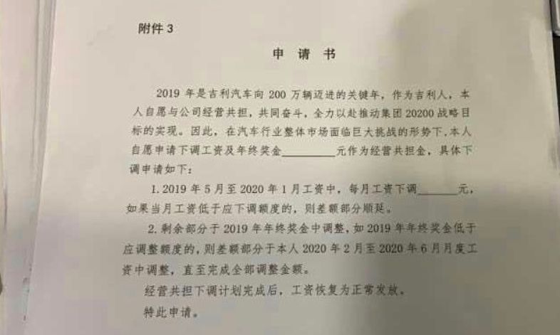 另外一则消息是,根据网上流传出来的图片,为了2019年200万销量目标的完成,部分员工“自愿”进行降薪并调低年终奖。